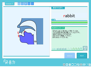 世界最高レベルの音声分析技術が使われたソフトは、学習者の発音を分析し、下の位置や口の形まで正しい発音になるアドバイスを的確に指導してくれます。