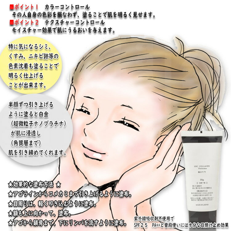 しかも、プラチナ配合のCCクリームは塗るサプリシリーズだけ! 半顔ずつ引き上げるように塗るとプラチナのもつ収れん作用で ぼやけてくるフェイスラインもキュッと引締めマイナス10歳顔に! 紫外線吸収剤不使用でSPF25 PA++と普段使いには十分な日焼け止め効果でお肌にも嬉しい■ 成分水、シクロペンタシロキサン、BG、ジエチルヘキサン酸ネオペンチルグリコール、PEG−10ジメチコン、ソルビトール、 ジメチコン、ペンチレングリコール、セスキイソステアリン酸ソルビタン、白金、加水分解コラーゲン、イソステアリン酸フィトステリル、グリチルリチン酸2K、シア脂油、硫酸Mg、 (ジメチコン/メチコン)コポリマー、ステアリン酸、メチコン、ジステアルジモニウムヘクトライト、ポリソルベート80、クエン酸Na、トコフェロール、 酢酸トコフェロール、フェノキシエタノール、メチルパラベン、酸化亜鉛、タルク、酸化鉄、酸化チタン、水酸化Al■ 内容量30g 【保存方法】 使用後はキャップをしめ、乳幼児の手の届かない所に保管してください。