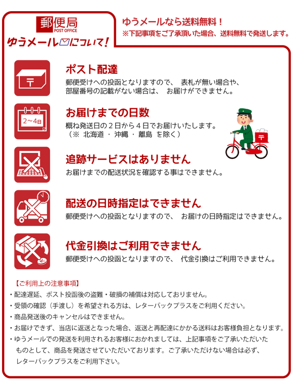 ※送料について ゆうメール以外の発送は別途送料が掛かります。