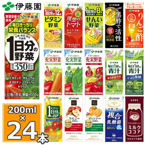 伊藤園 選べる22種 野菜ジュース 200ml×24本入紙パック 充実野菜 1日分の野菜 ビタミン トマト 青汁 ブルーベリー 酢 黒酢 フルーツ バナナ 乳酸菌 せんい ココア Mix ネクター 一日分の野菜 アソート